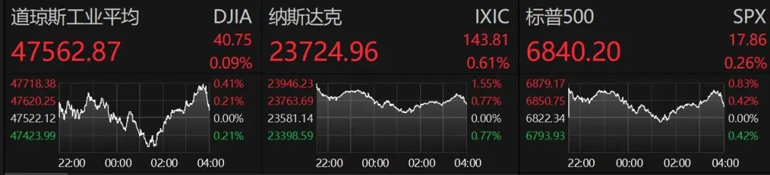 10月31日,美股三大指数盘中拉升集体收涨,纳指涨0.61%,标普500指数涨0.26%,道指涨0.09%。